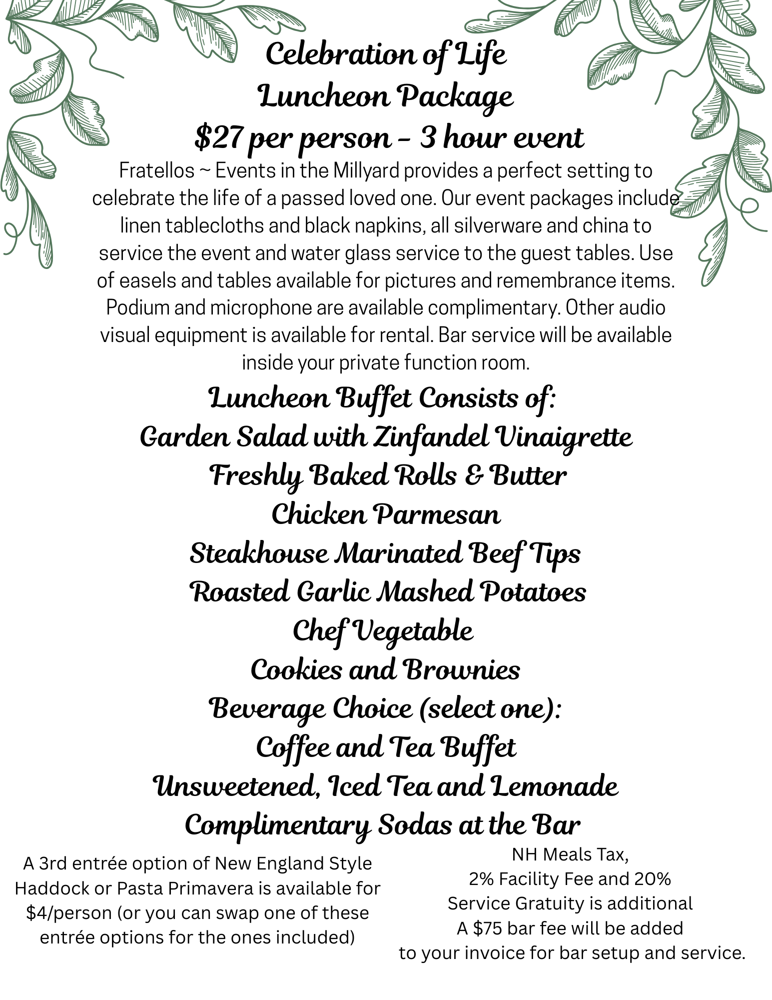 Email: banquets@fratellos.com