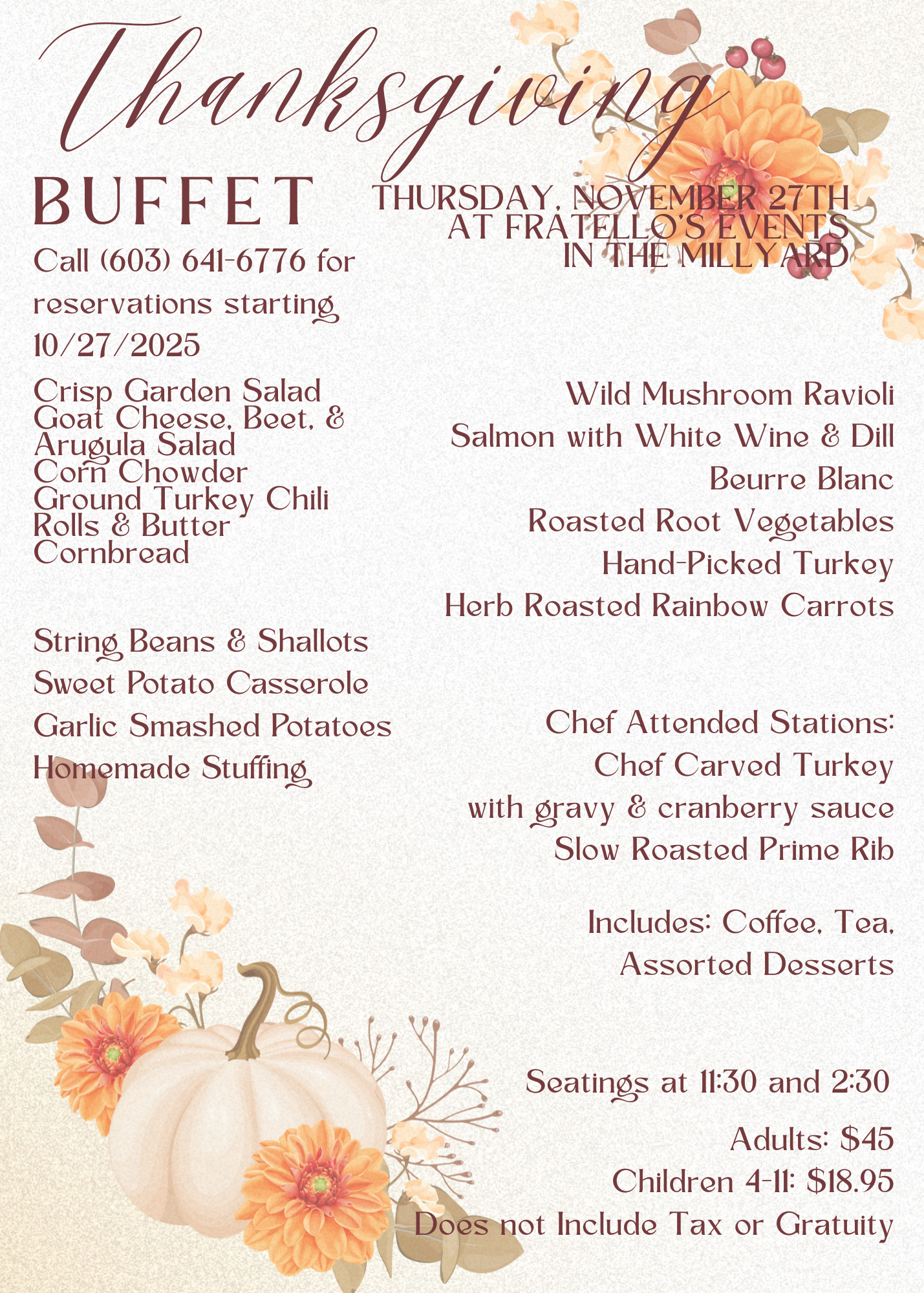 Thanksgiving Buffet 2025 reservations are open!